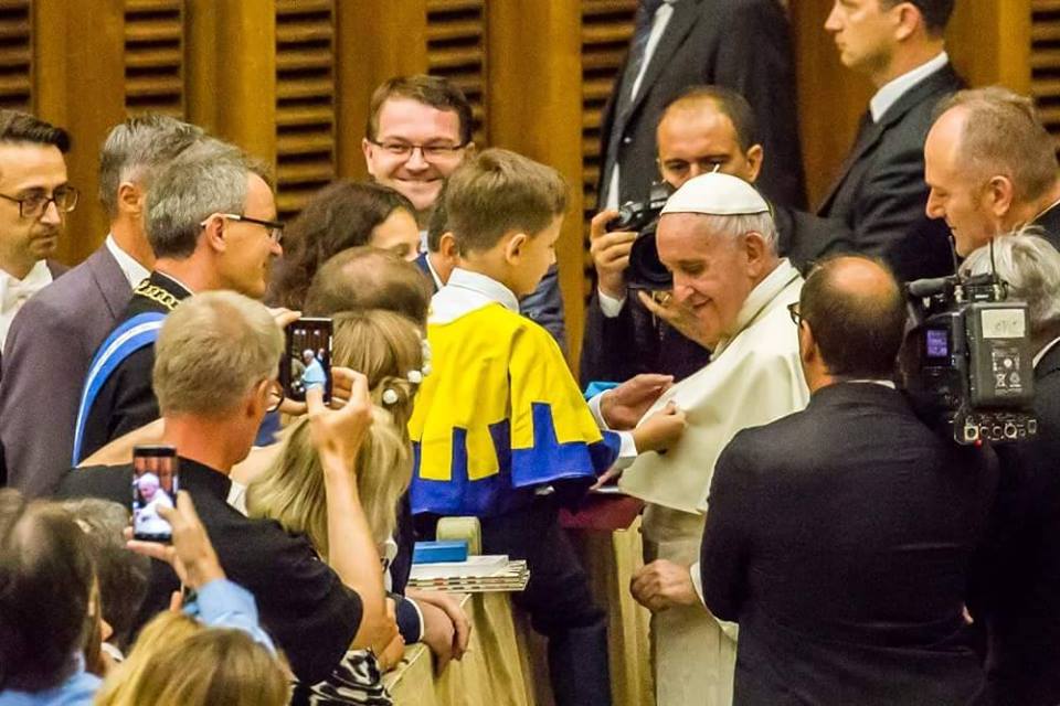 Ceremonia miała miejsce w Auli Pawła VI podczas audiencji generalnej. Papież był wyraźnie wzruszony i zadowolony. Mocno uściskał dzieci, wyrażając wdzięczność za ich szlachetny gest. Zgoda na przypięcie Orderu jest bezprecedensowa, gdyż papież Franciszek z zasady nie przyjmuje odznaczeń.