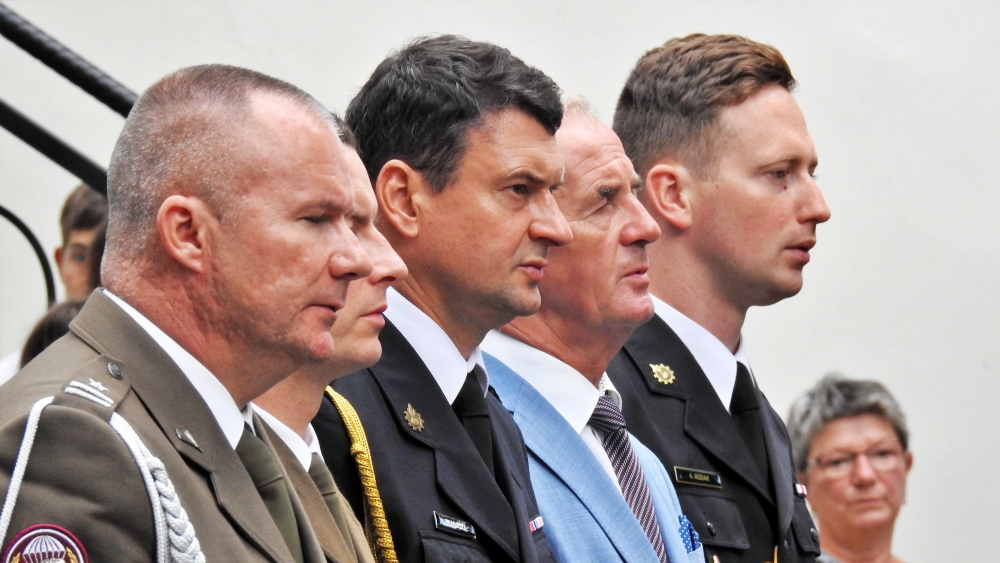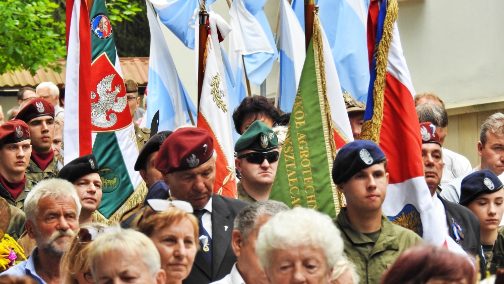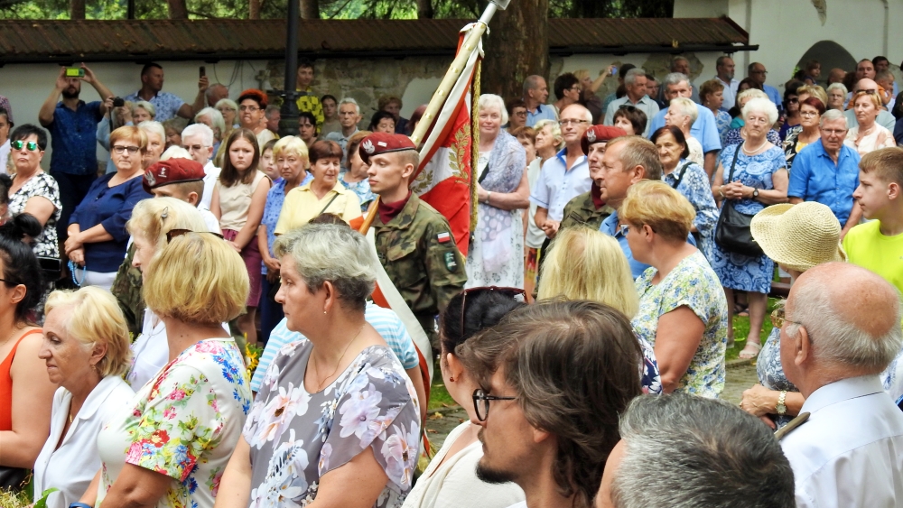 W Mszy udział wzięli przedstawiciele władz różnych szczebli. Obecne były poczty sztandarowe żołnierzy i kombatantów. Gości i poszczególne delegacje powitał kustosz maryjnego sanktuarium rychwałdzkiego o. Przemysław Janik OFMConv.