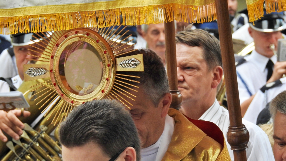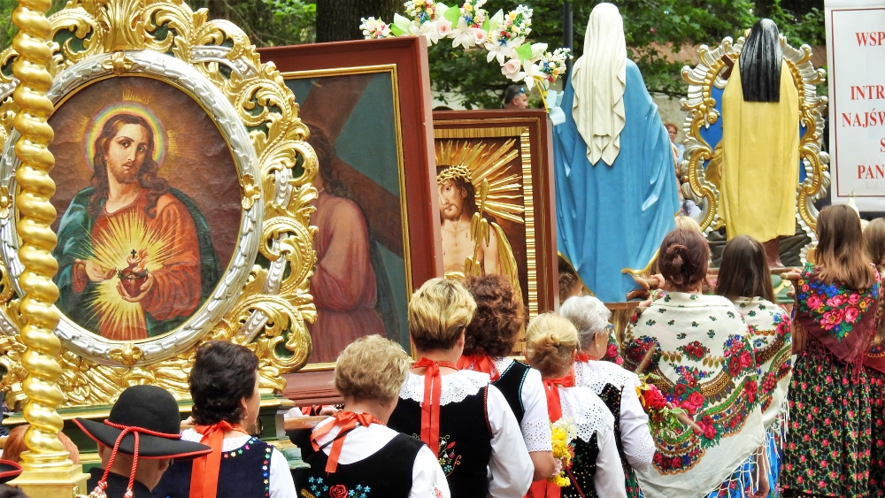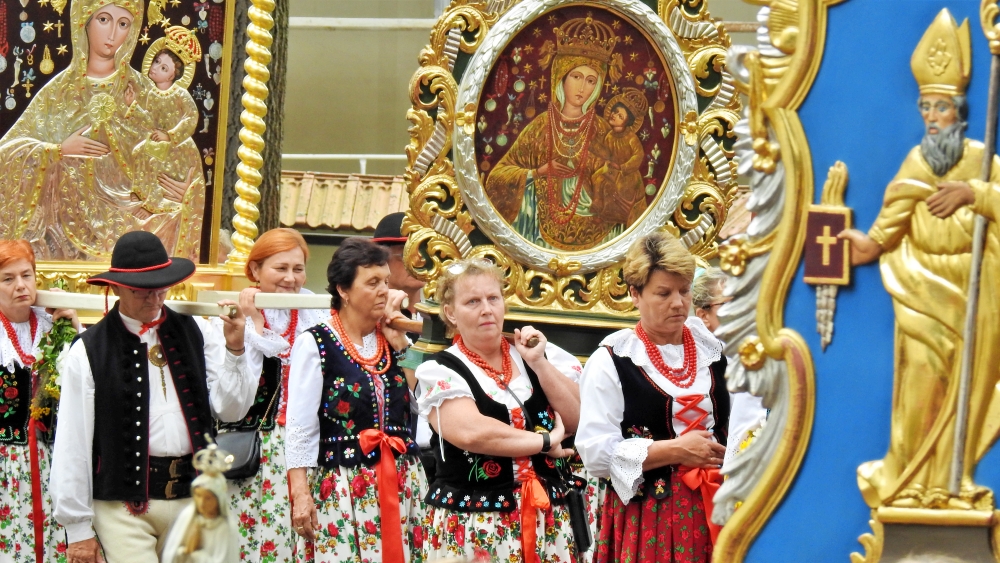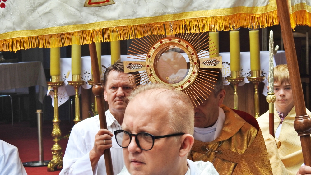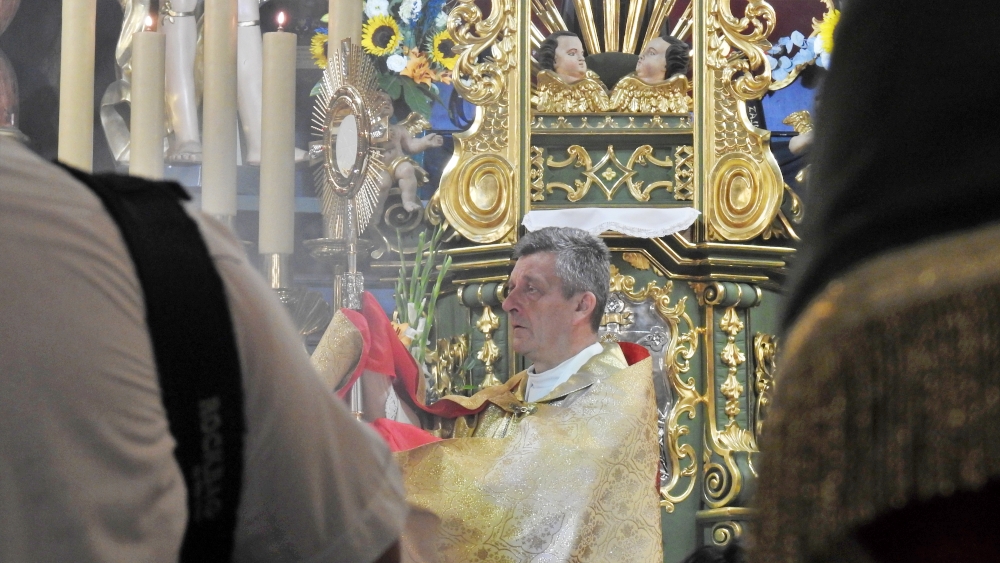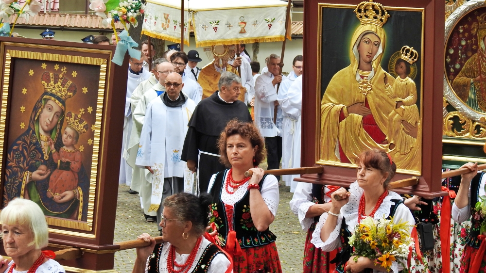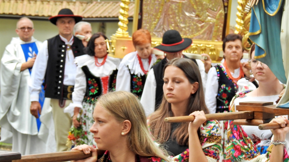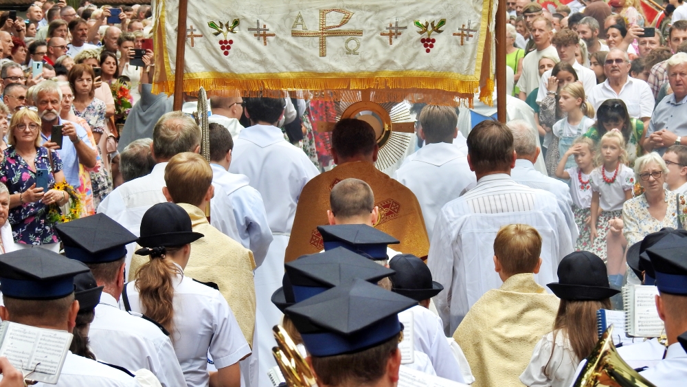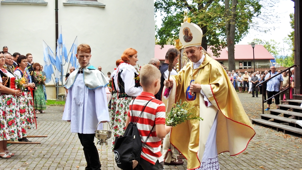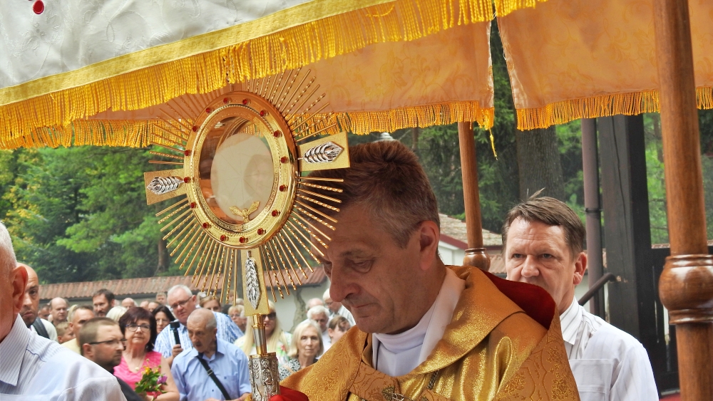 Mszę św. zakończyła procesja eucharystyczna wokół sanktuarium w Rychwałdzie. W kolorowym przemarszu wzięła udział m.in. kompania honorowa bielskiego 18. batalionu, ze sztandarem. Zagrała Orkiestra Dęta OSP Rychwałdek. Wcześniej biskup poświęcił bukiety zielne i kwietne przyniesione przez wiernych.
