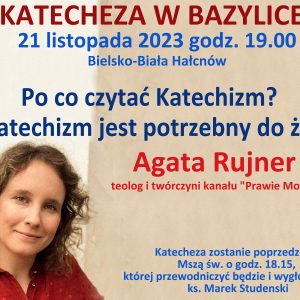 Drodzy Katecheci, Serdecznie zapraszamy do hałcnowskiej bazyliki na spotkanie z panią Agatą Rujner, która wygłosi katechezę: Po co czytać katechizm? Czy katechizm jest potrzebny do życia? Katecheza odbędzie się 21 listopada o godz. 19.00. Zostanie ona poprzedzona Mszą św. o godz. 18.15, której przewodniczyć będzie i wygłosi kazanie ks. Marek […]