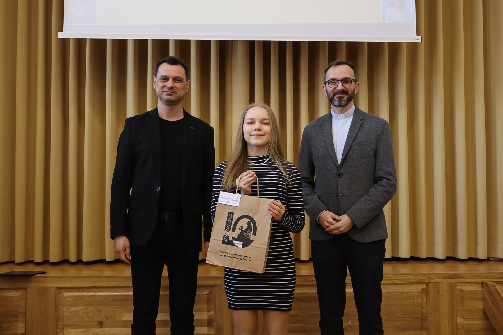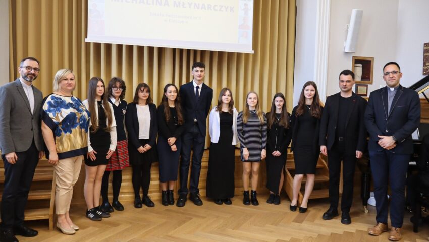 10 kwietnia br. w auli im. Stanisława Pyjasa w I Liceum Ogólnokształcącym im. Mikołaja Kopernika w Żywcu odbyła się uroczysta gala, w trakcie której nagrodzono laureatów II Diecezjalnego Konkursu Literacko-Religijnego o Rodzinie. Konkurs był adresowany do uczniów szkół podstawowych (VI-VIII) oraz ponadpodstawowych Diecezji Bielsko-Żywieckiej i odbył się pod honorowym patronatem Biskupa Ordynariusza Romana Pindla i Księdza Dziekana Grzegorza Gruszeckiego – proboszcza Parafii Narodzenia NMP w Żywcu i Księdza Jacka Moskala – Wicerektora Wyższego Seminarium Duchownego Archidiecezji Krakowskiej. Patronat medialny nad wydarzeniem objęli „Gość Niedzielny” oraz Radio „Anioł Beskidów”. W celu rozpowszechnienia inicjatywy i zachęcenia uczniów do udziału, młodzież z naszego liceum, pod opieką ks. Łukasza Listwana i pani Dominiki Kamińskiej, odwiedziła siedzibę radia. Podczas wizyty nagrali audycję, w której opowiedzieli o przedsięwzięciu, jego celu oraz formie. Był to również czas, w którym młodzi ludzie mogli podzielić się swoimi osobistymi refleksjami na temat rodziny, jej roli w życiu człowieka oraz wyzwań, jakim musi sprostać. Audycja była doskonałą okazją, by uczniowie nie tylko zachęcili innych do udziału, ale również zaprezentowali swoje przemyślenia na temat wartości, które stanowią fundament rodzinnych więzi.