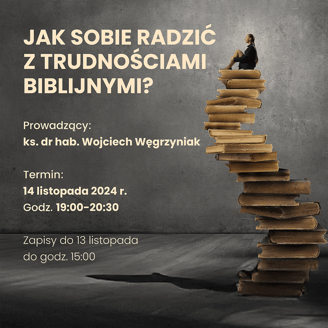 Podczas webinarium: przybliży się i uświadomi przyczyny trudności z czytaniem Biblii, poda kilka modelowych przykładów rozwiązywania trudności biblijnych, zaproponuje ogólne zasady radzenia sobie z trudnymi fragmentami Biblii.