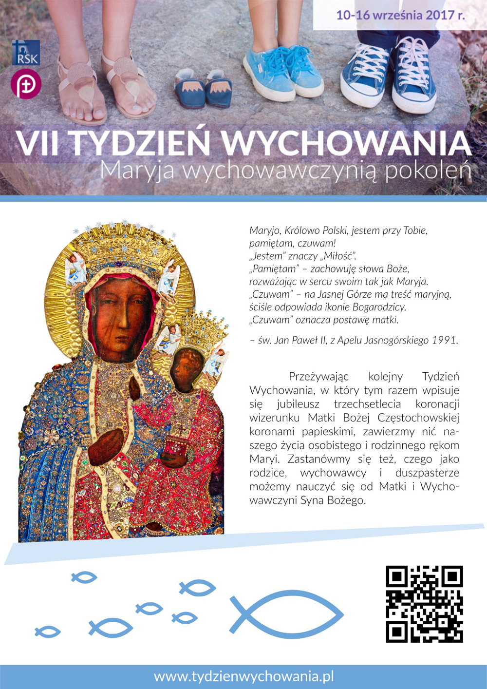 Hasło VII Tygodnia Wychowania „Maryja wychowawczynią pokoleń” zostało wybrane ze względu na obchodzoną niedawno trzechsetną rocznicę koronacji obrazu Matki Bożej Częstochowskiej.