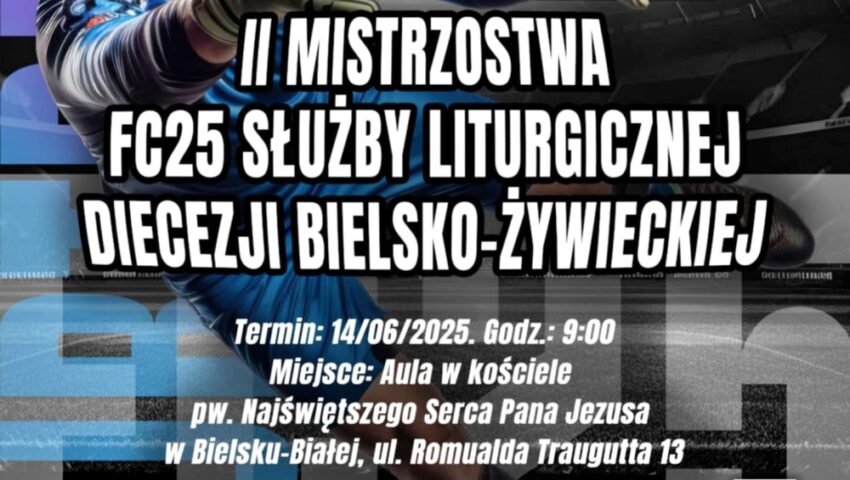 Z wielką radością pragniemy Was zaprosić na II Esportowe Mistrzostwa Służby Liturgicznej Diecezji Bielsko-Żywieckiej w grę FC 25, które odbędą się w dniu 14 czerwca 2025 roku w Bielsku-Białej. Wydarzenie odbędzie się pod honorowym patronatem Jego Ekscelencji Biskupa Ordynariusza Romana Pindla oraz zostanie zorganizowane przez Stowarzyszenie Esport Polska. Czeka na Was ciekawe wyzwanie i wyjątkowe nagrody.