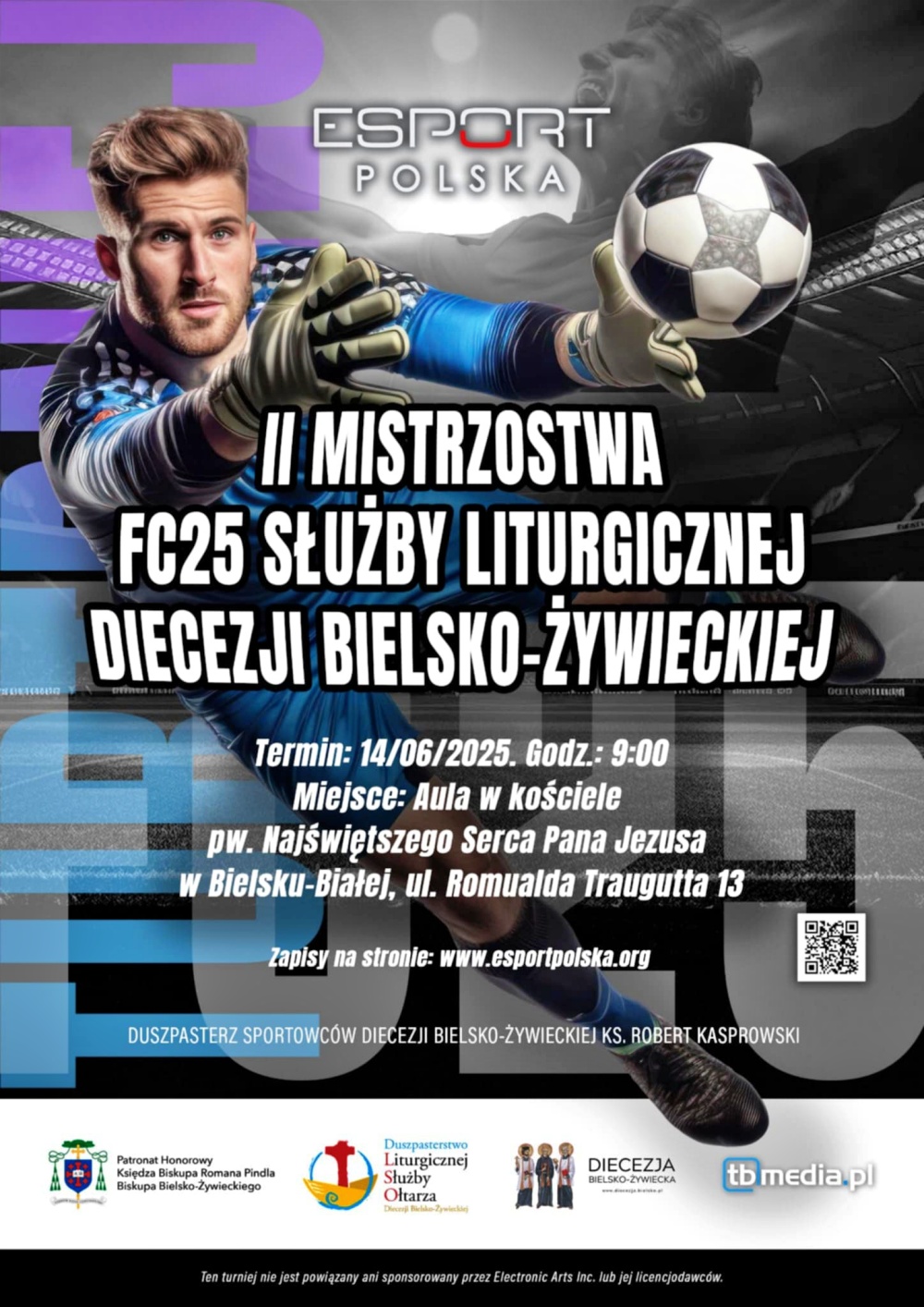 Z wielką radością pragniemy Was zaprosić na II Esportowe Mistrzostwa Służby Liturgicznej Diecezji Bielsko-Żywieckiej w grę FC 25, które odbędą się w dniu 14 czerwca 2025 roku w Bielsku-Białej. Wydarzenie odbędzie się pod honorowym patronatem Jego Ekscelencji Biskupa Ordynariusza Romana Pindla oraz zostanie zorganizowane przez Stowarzyszenie Esport Polska. Czeka na Was ciekawe wyzwanie i wyjątkowe nagrody.
