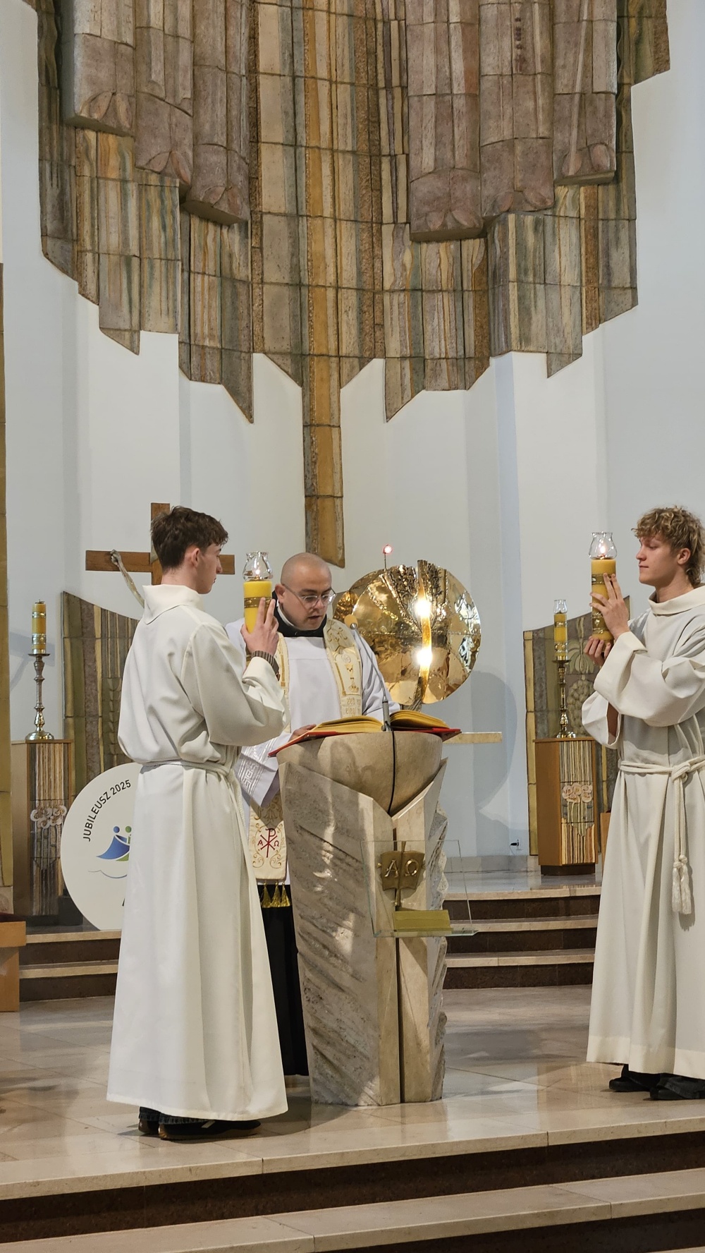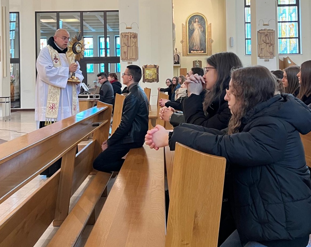 „Być może mogliście wymyślić coś innego i powiedzieć: ‘Nie, będę miał wolny dzień, super luks’. Chyba że szkoła jest w zamian. Ze szkoły to pewnie też bym zrezygnował, ale to inna bajka. Pan Jezus chce być w każdej sytuacji. Pan Bóg zrobił rzecz też kolejną niesamowitą, bo dał nam Ducha Świętego. To jest kolejny punkt tego kerygmatu” – uzupełnił i zachęcił do adoracji Jezusa eucharystycznego.