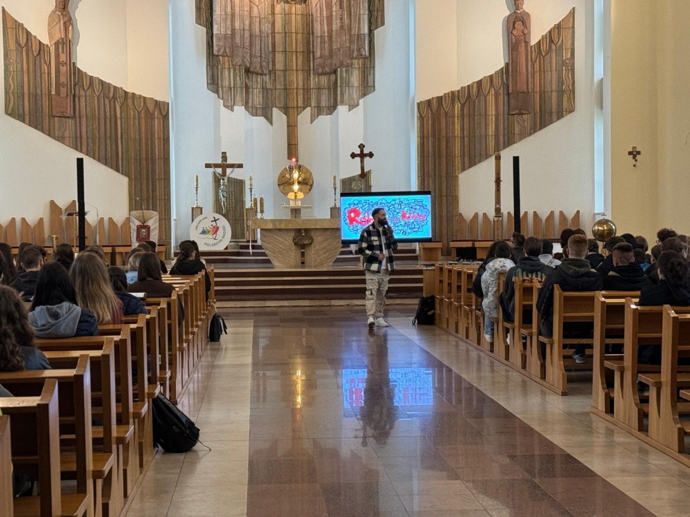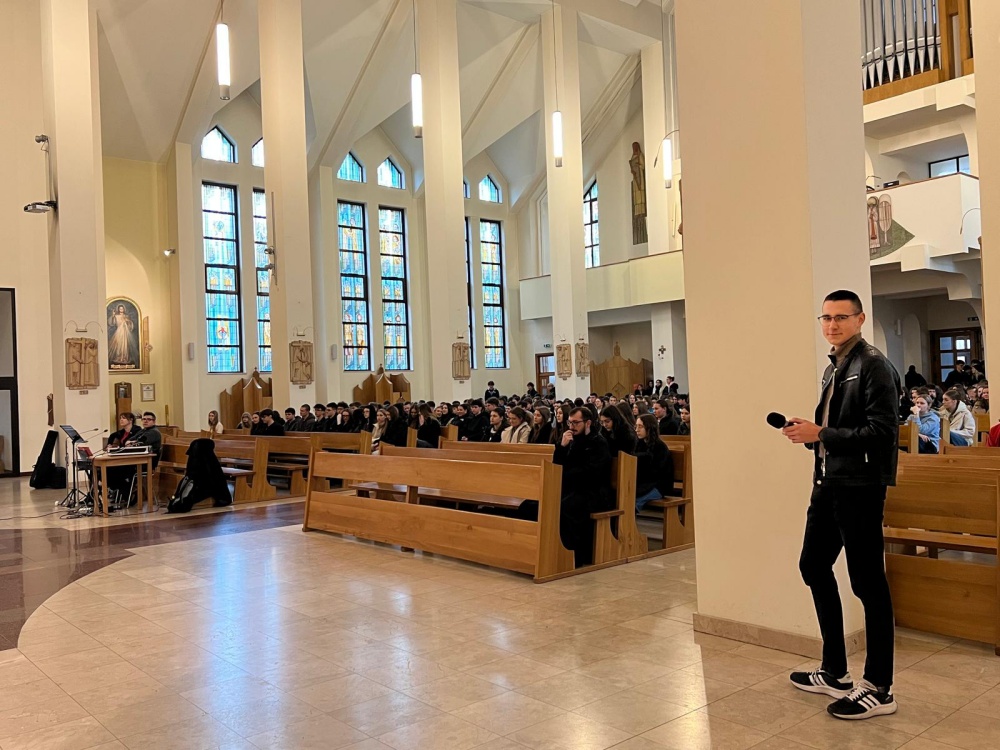 O Bożej miłości, grzeszności człowieka oraz potrzebie nawrócenia mówił ks. Wojciech Nowak podczas spotkania 27 marca 2025 r. w ramach „Duchowej rEwolucji” w kościele NSPJ w Kętach. Innym mówcą podczas jednodniowych rekolekcji wielkopostnych, skierowanych do uczniów szkół ponadpodstawowych, był raper Arkadio.