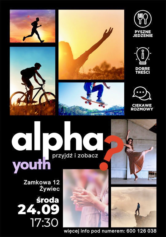 W środę, 24 września, o godz. 17:30 w konkatedrze żywieckiej rozpocznie się cykl spotkań Alpha dla młodzieży. Organizatorzy zapraszają wszystkich powyżej 15. roku życia, którzy chcą w swobodnej atmosferze rozmawiać o sprawach ważnych i często nurtujących młodych ludzi. Spotkania łączą element wspólnego posiłku, krótkich inspirujących treści i otwartej dyskusji.