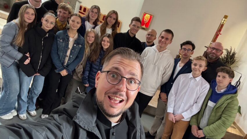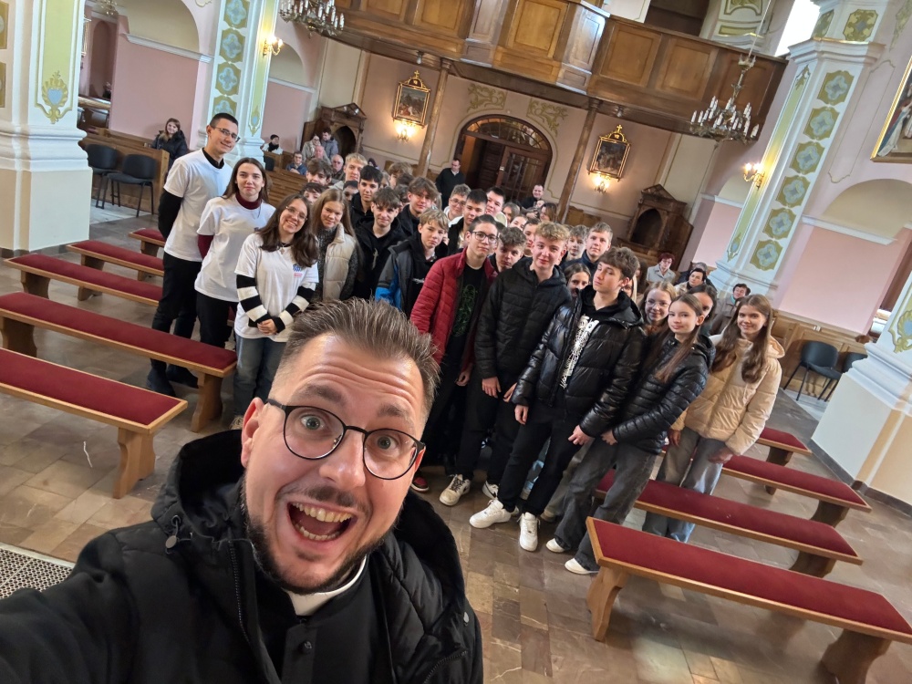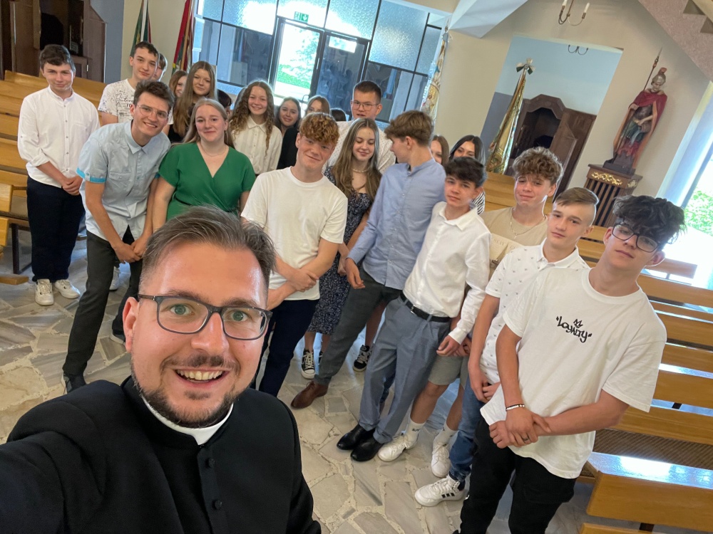 Kilku młodzieżowych liderów dekanalnych, towarzyszących księdzu Kamilowi spotyka się również z młodzieżą po jednej z Mszy, by trochę swobodniej porozmawiać o Bogu i wierze, podzielić się świadectwem i opowiedzieć o tych dziełach, które już udało nam się w diecezji podjąć.