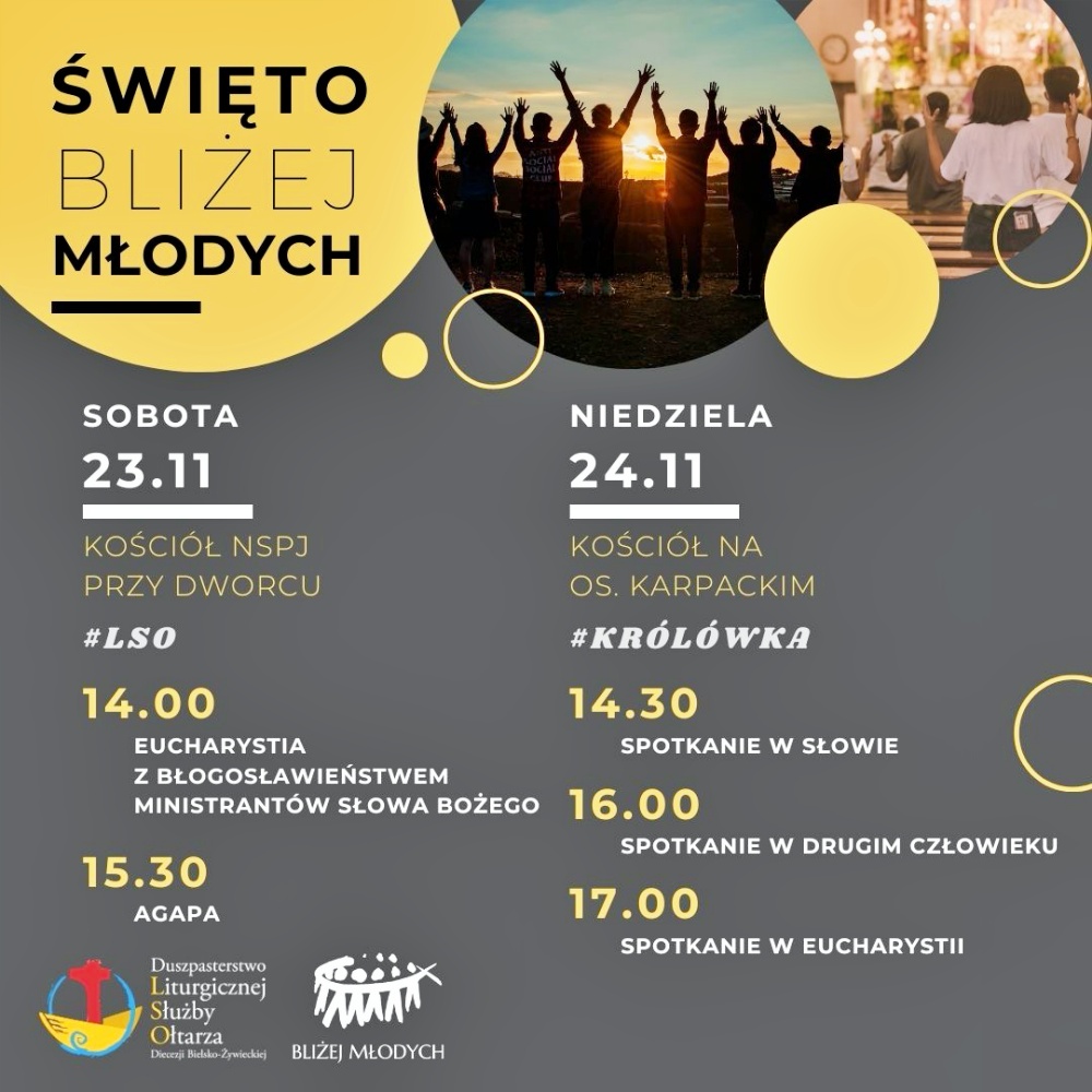 Serdecznie zapraszamy na wspólne świętowanie Światowego Dnia Młodzieży w Diecezji, który będziemy przeżywać w Uroczystość Jezusa Chrystusa Króla Wszechświata, 24 listopada.
