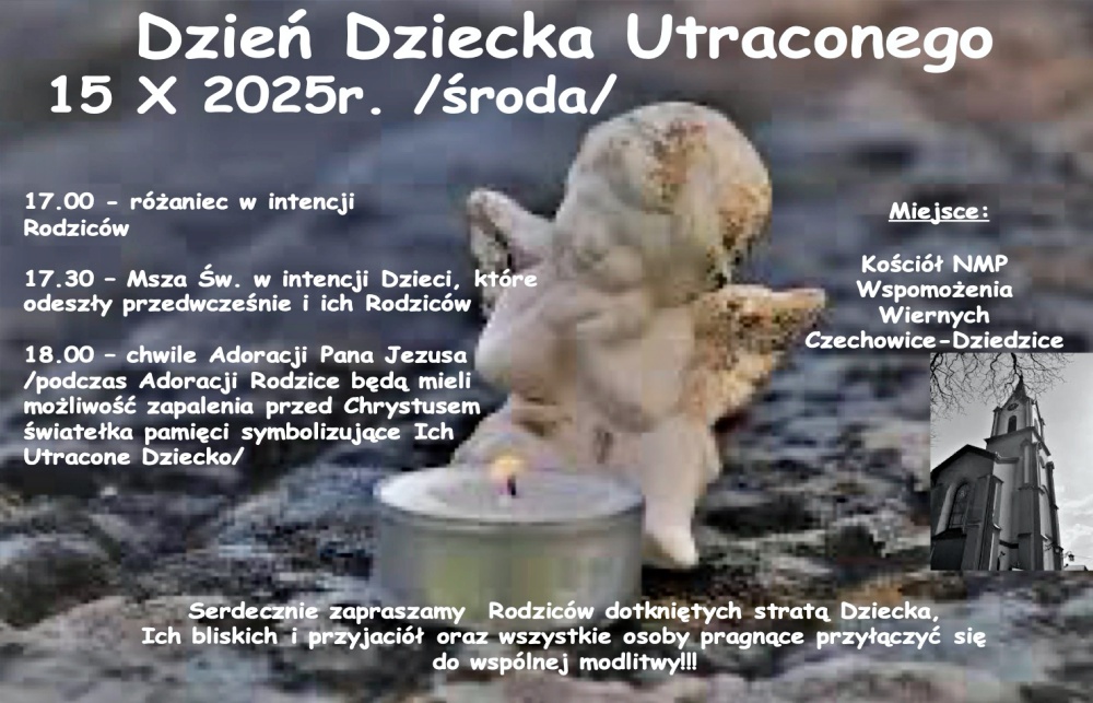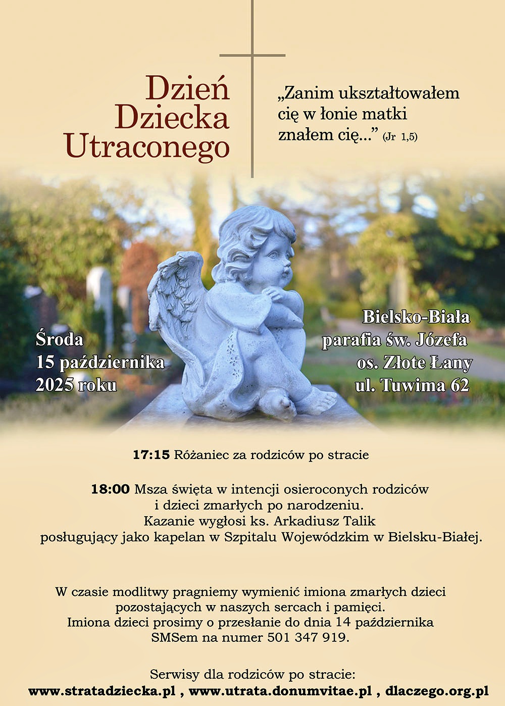 To dzień modlitwy, wspólnoty i pamięci o dzieciach, które odeszły zbyt wcześnie, a mimo to na zawsze pozostają w sercach swoich rodziców. Dla wielu osób doświadczenie straty może stać się impulsem do pogłębienia wiary i poszukiwania sensu w bliskości z Bogiem. Kościół pragnie towarzyszyć tym, którzy przeżywają żałobę i potrzebują wsparcia.