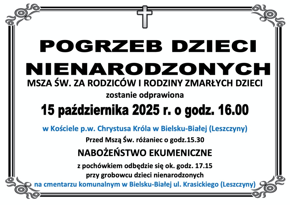 15 października (środa) – Pogrzeb Dzieci Nienarodzonych