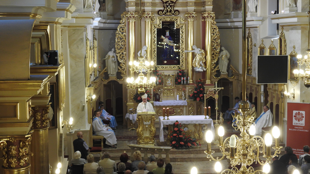 Eucharystię w bazylice koncelebrowało kilku kapłanów, w tym dyrektor bielsko-żywieckiej Caritas, ks. Robert Kasprowski. Na końcu Mszy św. chorzy otrzymali błogosławieństwo na sposób praktykowany w Lourdes. Biskup przeszedł wzdłuż głównej i bocznych naw kościoła, zatrzymując się nad pielgrzymami, błogosławiąc ich Najświętszym Sakramentem.