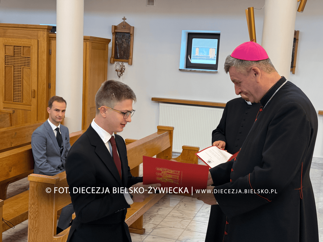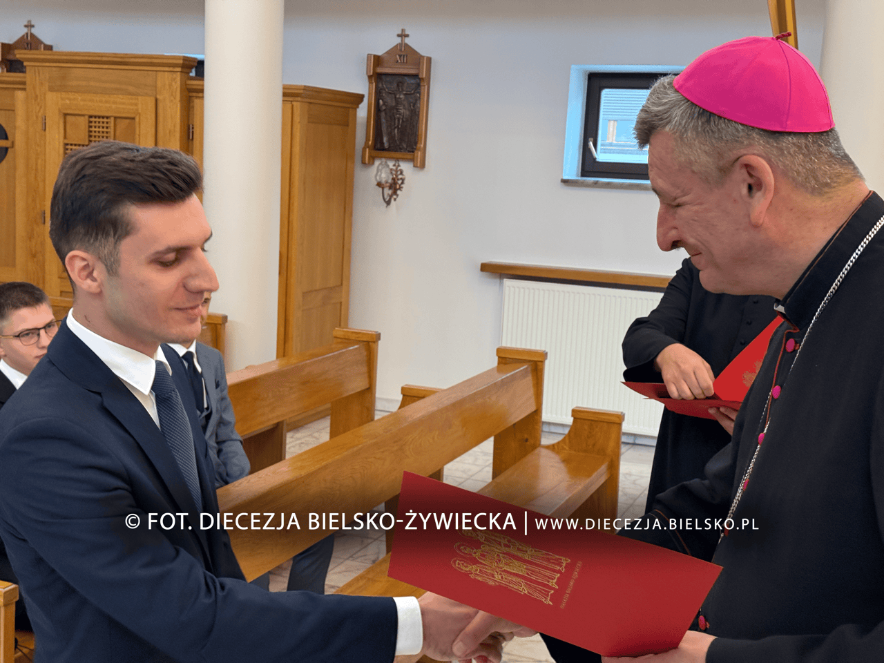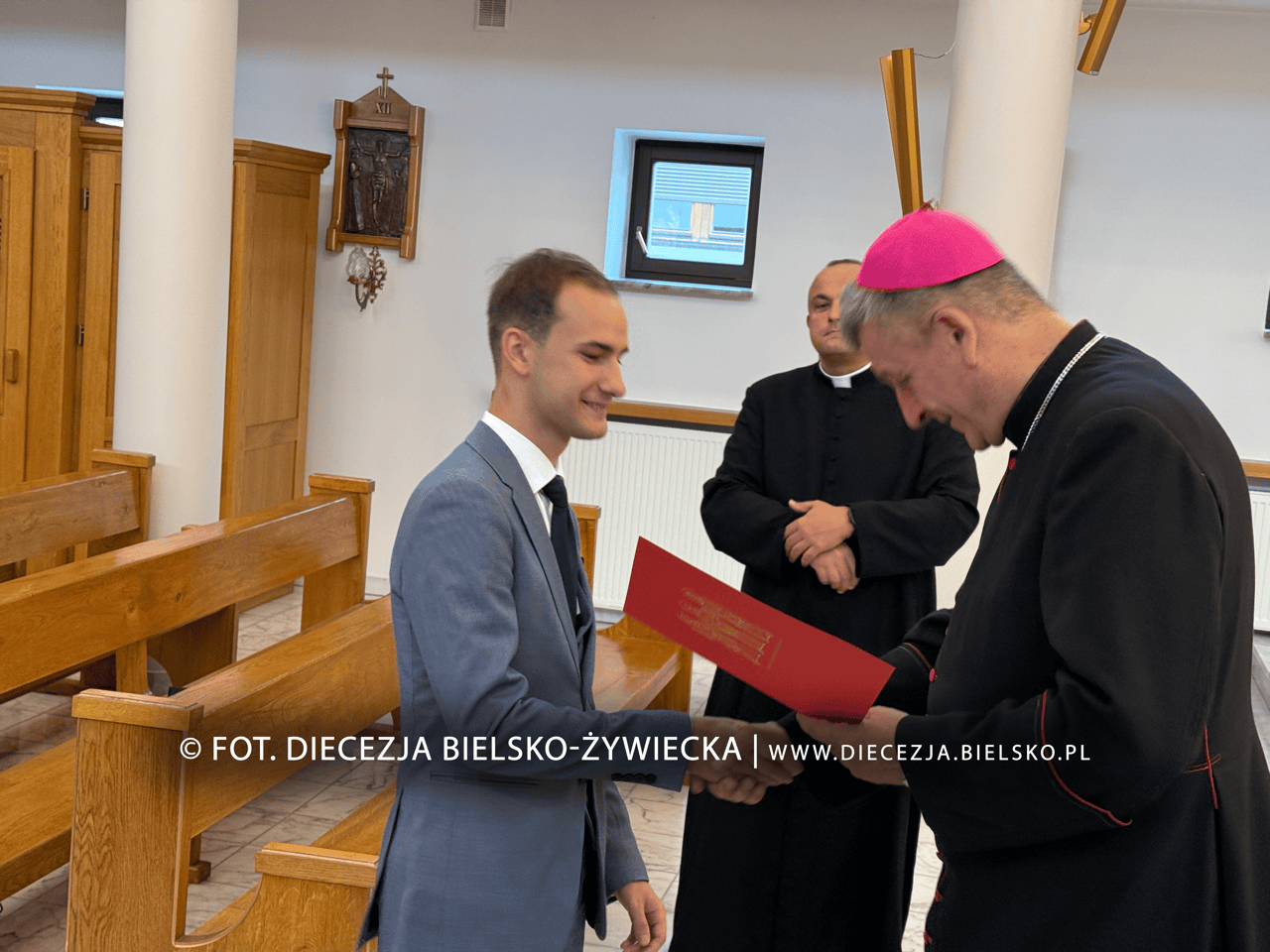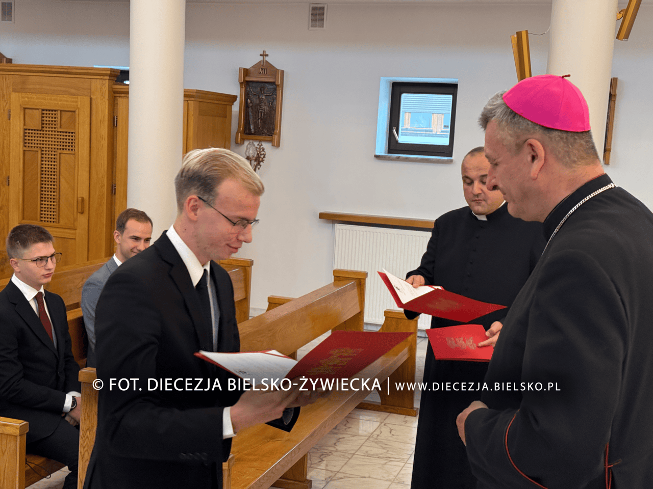 Dziś biskup Roman Pindel przyjął sześciu nowych alumnów na rok propedeutyczny w Krakowskim Seminarium Duchownym. W swoim słowie podkreślił, że czas seminarium to przede wszystkim uczenie się słuchania i wypełniania Słowa Bożego – to ono czyni nas prawdziwą rodziną Jezusa.