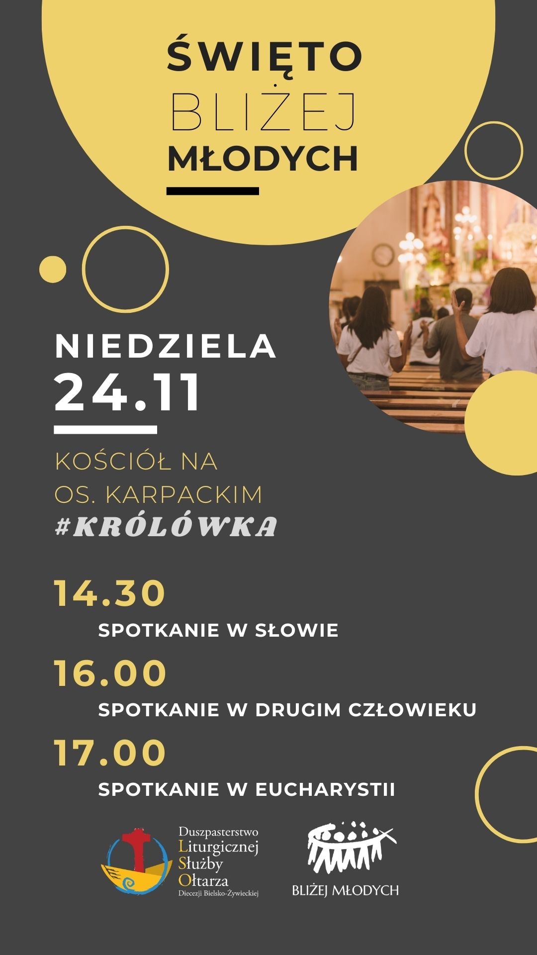 Serdecznie zapraszamy na wspólne świętowanie Światowego Dnia Młodzieży w Diecezji, który będziemy przeżywać w Uroczystość Jezusa Chrystusa Króla Wszechświata, 24 listopada.
