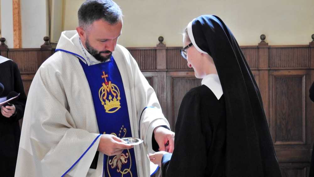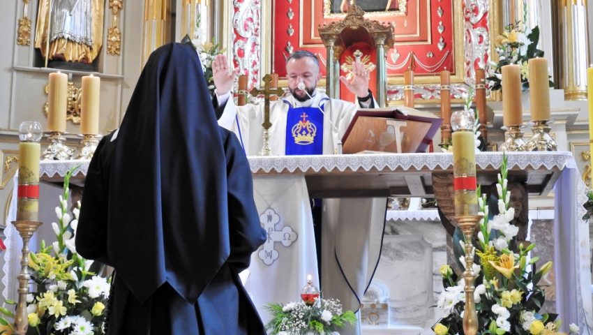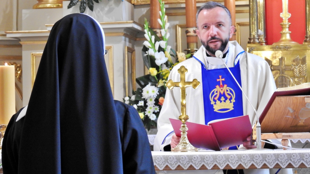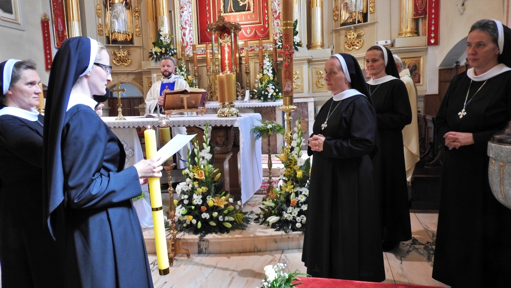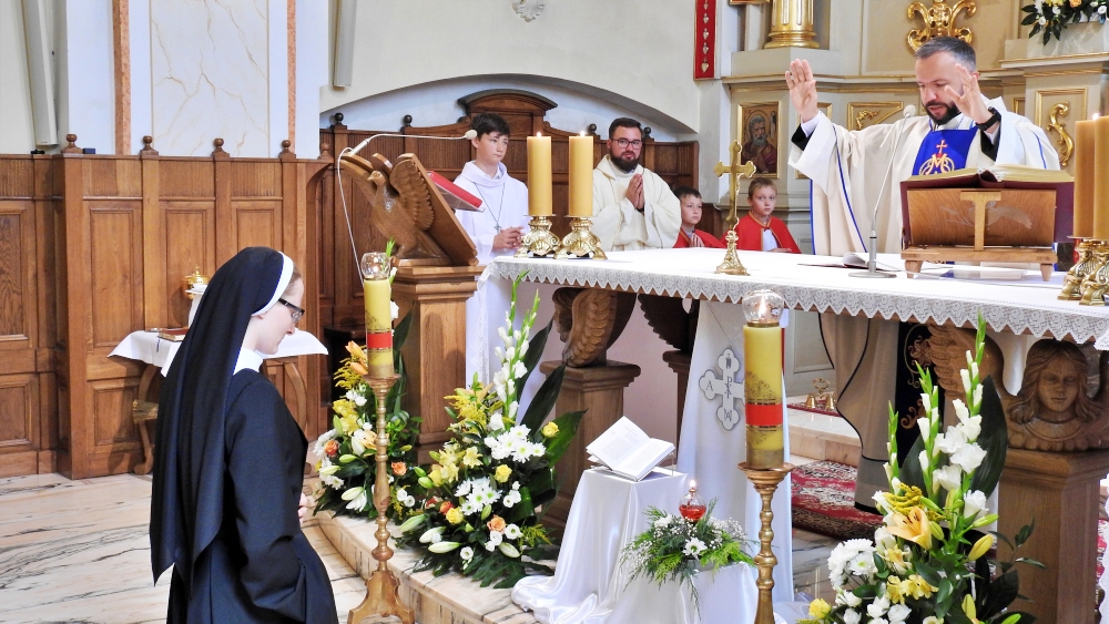 Zakonnica podczas Mszy św. w kęckim kościele śś. Małgorzaty i Katarzyny ślubowała czystość, ubóstwo i posłuszeństwo. Jak przyznała, jej droga powołania zakonnego to odpowiedź na powołanie Zmartwychwstałego Pana.